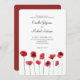Cachorros vermelhos em um convite de casamento. Design floral elegante e colorido num fundo branco, com um dorso vermelho veludo. O plano de fundo é transparente para que possa ser alterado e personalizado.