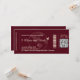 Convite Para Casamento De Passagem De Embarque - Borgonha E Champanhe | Cartão de Bilhete de Destino Comemora seu amor com este convite de casamento de burgundy e champagne, estilizado como um bilhete de avião. Perfeito para casamentos outono, comemorações de inverno ou cerimônias de destino no exterior. Totalmente personalizável com seus detalhes inspirados no viagem, impressos em papel premium para um acabamento elegante.