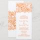 Coral Orange Love Bird Lace Invitation. Pássaros Adoráveis Fairytale Folksy Arte Folk Aestética Lovebird Monograma Casamento ou Henna Mehndi Paisley Love Birds Lace Inspirado Casamento Estético. Monograma Elegante Mas Funky Orange Love Birds Convite para casamento Ver correspondência entre RSVP e cartas de agradecimento