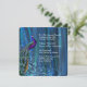 Um convite de casamento escura e elegante, de cor azul-turquesa, que parece quadrado, com gráficos deliciosos de um floreio azul claro e um pavão colorido. Texto em branco está pronto para personalizar para o seu casamento. Produtos correspondentes disponíveis.