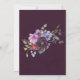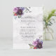 Design apresenta um elemento floral impresso em tons de ameixa e violeta sobre folhas de eucalipto verde e florescência de pénia sobre fundo de aquarela roxo. Excelente para as comemorações do casamento!