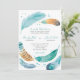 Um convite de casamento elegante apresenta ilustrações de cor d'água de penas.