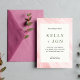 Este convite de casamento é a escolha perfeita para casais que procuram um design simples, mas elegante. A carteira de cartões utilizada é da mais alta qualidade, proporcionando uma sensação de estresse e assegurando que o convite irá durar anos vindouros. A borda cor-de-rosa suave adiciona um toque de sofisticação ao design geral, enquanto o padrão único de penas é charmoso e distinto. O que distingue esse convite de outros é o uso criativo de uma foto de close-up de penas cor-de-rosa em vez de usar apenas uma cor rosa comum para a borda. Isto adiciona uma textura sutil, mas bonita, ao convite que certamente encantará os destinatários. O padrão da pena é impresso com tinta de alta qualidade que garante que as cores sejam vibrantes e verdadeiras à vida. Este convite é perfeito para casais que querem criar uma experiência de casamento elegante e memorável para seus convidados. É uma escolha bela e sofisticada que certamente dará o tom para uma ocasião verdadeiramente especial.