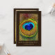 Um elegante pavão temeu o convite de casamento com uma bela fotografia de uma pena de pavão romântica com um olho azul real em forma de coração enquadrado num filme marrom rico e um sutil escrevendo de ouro que diz: Diante dos olhos da família e dos amigos eles juram. Personalize o texto personalizável na parte de trás deste belo convite para cerimônias de casamento adicionando o nome da noiva e do noivo.