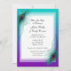Convites de casamento para penas de pavão elegantes com roxo, turquesa e detalhamento azul profundo.