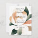 Um design simplista que apresenta um pêssego e uma coloração aquosa esfregando uma peônia com folhas verdes sábias e um flurry de salmões acentuando o fundo e a informação. Um convite floral pronto para você personalizar para seu dia especial.
