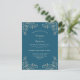 Um convite de casamento elegante com efeito de brilho decorativo de ouro borda num fundo aqua verde-marinho. Projetado para um casal lésbico a ser casado. Todo texto pode ser personalizado. Este convite faz parte de uma coleção, por isso, por favor, verifique os outros itens. Se houver outros produtos com este design, entre em contato comigo em lesley@ahahdodo.com