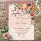 Suave, adorável e colorido, este convite ao estilo Boho faz parte da suíte Floral Boho Peach Wedding criada pela Simplesmente Farmhouse Press. A terra e as joias do fundo de cor de água do buquê floral e do pêssego mole fazem dela uma bela seleção para o verão ou casamentos outono.