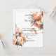 Uma bela combinação de peônias de pêssego e rosas com uma sugestão de lavanda misturada. Uma fita adesiva de pêssego macio adiciona interesse às flores. Um convite floral pronto para você personalizar para seu dia especial.