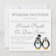 Pinguins de casamento bonitos impressos em um convite de casamento personalizável, adequados para enviar aos convidados do dia todo.