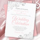 Estes convites para casamento baratos e amigáveis são a escolha perfeita para a aula, estilo e beleza num orçamento. O design apresenta um texto cor-de-rosa e cinza pincelado sobre um fundo branco clássico, com a cinza prateada de ornamentado e espirais nos cantos. A tipografia inclui a inscrição em rico para um estilo simples e elegante. Uma maneira maravilhosa de convidar seus amigos e família para compartilhar sua alegria em seu dia especial sem quebrar o banco.