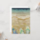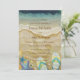 Convite de casamento de praia, bela ilustração de areia, mar, água, chinelos e concha marítima, pano de fundo perfeito para um casamento de praia íntimo