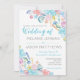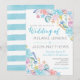 Convite para casamento de praia em aquarela com conchas marítimas e cavalos marinhos.