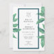 A Ilha Tropical de Praia Green Abre Convite de Casamento com pinturas originais e moldura de marinho de tendências. Linda mão pintou quadros de folhas verdes sobre fundo cor-de-rosa criando uma design moderna, tropical e de tendências. Casamentos de Praia e Casamentos de Ilha. Fresco e simples com um quadro de marinho de tendência.