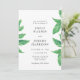 A Ilha Tropical de Praia Green deixa um convite de casamento com pinturas originais. Linda mão pintou quadros de folhas verdes sobre fundo cor-de-rosa criando uma design moderna, tropical e de tendências. Casamentos de Praia e Casamentos de Ilha. Fresco e simples.
