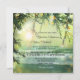 Convite de casamento com uma imagem mágica de praia com luzes cintilantes. As cores são verde-amarelo-quente e azul-claro-verde-claro. Um convite fresco e festivo para um casamento na praia ou no destino. Este convite tem uma placa RSVP correspondente.