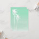 Um convite de casamento para a praia tropical apresentando uma ilustração de duas palmeiras brancas à esquerda sobre um fundo aqua ombre. Personalize o texto branco com detalhes da sua ocasião.