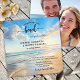 Um convite de casamento elegante com uma pintura aquosa de praia num dia ensolarado. No verso está a opção de adicionar a sua foto. Um adorável convite para um casamento de praia ou destino.
