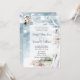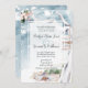 Casal que ama a praia pode optar por se rodear com um tema de praia de Boho. As aquarelas capturam o céu do oceano, o porto de madeira derivada e o sentimento de que o amor está no ar neste dia especial. Esta design ecoa o amor que eles têm um pelo outro e pela natureza. Cores da praia e um azul-oceano macio. Mensagem em reverso, iniciais de monograma em detalhes de madeira derivada no final do convite Fontes modernas e design natural em um posicionamento de variação vertical. Uma lavagem do céu azul com aquarela ao contrário com texto personalizável.