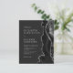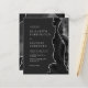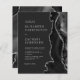 A borda direita deste elegante convite de casamento moderno apresenta uma aquarela preta, borda agitada com falso brilho prateado. O texto personalizável combina fontes de cinza prateada se, copperplate e itálico estiverem em um fundo preto de ardósia. O verso apresenta um design de agata preto e prateado correspondente.