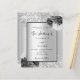 Fundo de aspecto fino prateado decorado com flores, flores e brilho fino prateado, brilhos. Personalize e adicione seus nomes e detalhes do casamento. Letras negras.