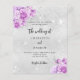 Um fundo falso, de aspecto prateado, com faíscas prateadas falsas e flores cor-de-rosa e violeta. Personalize e adicione seus nomes e detalhes. 1 folha = 1 convite impresso de borda a borda.