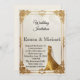 Um convite de casamento luxuoso que inclui um quadro floral de ouro ornamentado, fundo de marfim e uma elegante silhueta de noiva e noivo em ouro misturado. Perfeito para casais que buscam elegância de eterno e um estilo especial de papelaria de casamento.