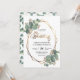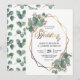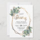Este é um belo convite de casamento com eucalipto e design de moldura geométrica dourada. Inclui-se um fundo correspondente com o padrão das folhas de eucalipto.