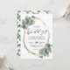 Este é um belo convite de casamento com eucalipto e design de moldura geométrica dourada. Inclui-se um fundo correspondente com o padrão das folhas de eucalipto.