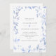 Um convite de casamento novo e moderno, com uma borda de folhas de cor azul-clara sobre um fundo branco limpo. Personalize com seus detalhes na cinza.