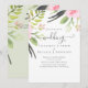 Bonito cor d'água pincelada flores cor-de-rosa, folhas verdes de azeitona aparecem neste simples modelo de convite clássico para casamento com o seu texto obrigatório modelo campos frente e verso. Você pode adicionar manter ou substituir a imagem com seus próprios gráficos, flores, abstrato, fotos para fazer deste um convite de casamento único, um convite de um tipo usando seu próprio talento criativo personalizado.