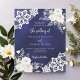 Para um casamento elegante e romântico. Um fundo azul marinho, incolor, decorado com flores, rosas e rendas brancas. Personalize e adicione seus nomes e detalhes. 1 folha = 1 convite impresso de borda a borda.