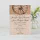 Um convite de casamento russo para oeste com uma roda de carroça e impressão de burlap backgournd. Completamente personalizável com seus próprios detalhes.