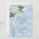 Solteiro White rose e convite para casamento de rendas azuis com lindas fitas pérolas e fitas de satin ilustradas para elegante casamento formal, aniversário ou modelo de festa de noivado O texto é totalmente personalizável. Adicione suas informações ou altere-as completamente. Selecione uma fonte e cor diferentes. O modelo pode ser utilizado para qualquer ocasião especial. Simplesmente mude o texto para atender às suas necessidades.