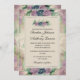 Um convite de casamento floral de cor aquosa com rosas cor-de-rosa e azul. Este convite faz parte de um conjunto completo.