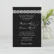Este design contemporâneo com sotaques de renda em um fundo preto e um belo rosa de desdobramento faz um convite de casamento elegante, e é apresentado atualmente em um papel metálico de ouro que dá ao seu convite um shimmer e brilho quentes.Você pode experimentar com diferentes tipos de papel para obter exatamente a aparência que quiser. Se quiser um acabamento brilhante (que só é aplicado na parte frontal do seu convite) escolha a folha, os papéis básicos ou metálicos. Se você quiser um acabamento mate, escolha o reciclado, o feltro ou o ponteiro. Este convite vem com um envelope tamanho A7.