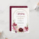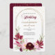Um quadro de ouro duplo, oval, é decorado com rosas e folhas vermelhas e rosa de marsala, no fundo deste bonito convite para o casamento. Seu texto personalizado está em verde-cinza, ouro e vermelho correspondente no centro. O terceiro também tem um espumante spray de confete de ouro. As imagens e o texto são colocados sobre um fundo branco elegante. A parte de trás do convite está combinando profundamente vermelho, com a mesma camada de confetti. Linda, moderna e chique! As cores neste convite são adequadas para cada estação. *Obrigados para Criação de LABF para as imagens florais neste design.