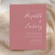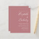 Este simples convite de casamento moderno contém um texto branco sobre um fundo poeirento de rosa. Adicione os nomes da noiva e do noivo na caligrafia de escrita manual do na moda e os detalhes na fonte sans serif. O reverso é uma sombra de rosa sólido empoeirado.