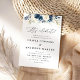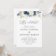 Marinho Azul e Rosas Brancas Convite para Casamento. Este na moda e elegante Convite para Casamento apresenta lindas cores d'água Marinho Azul e Rosas Brancas pintadas manualmente. Localize itens correspondentes na Coleção de Rosas Marinhos Azul e Branca.