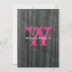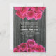 Um simples convite de casamento com um buquê de rosas cor-de-rosa quente saindo de cima e de baixo. O fundo é barnwood. Personalize o texto correspondente no centro com detalhes do casamento. O lado oposto apresenta um plano de fundo de madeira de barro correspondente. Personalize com os nomes da noiva e do noivo sobre o monograma. Papel branco do Reciclado.