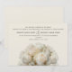 Um convite de casamento com uma imagem de rosas brancas no fundo sobre um fundo branco. Personalize o texto da cinza com detalhes da sua ocasião. A redação é dos pais da noiva.