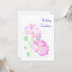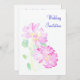 Um bonito Convite para Casamento com dois rosas cor-de-rosa soprados com cheio e letras azuis, de uma pintura aquarela de Judy Adamson. Tanto o cobrir frontal quanto a parte traseira são personalizáveis completa e facilmente.