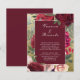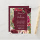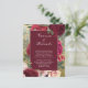 Parte do nosso orçamento. Este convite floral burgundy é o mesmo design, mas em papel diferente. Esteja ciente disso antes de fazer o pedido. Flores grandes, incluindo rosas e peônias de burlôdy e blush. Bonito vegetação e folhas sobre um fundo de ouro falso dão uma olhada vintage. Você vai adicionar a informação do casamento abaixo. Personalize com os primeiros nomes da noiva e do noivo. A segunda parte é onde você adicionará os detalhes do casamento, incluindo dia, data, hora e local. O inverso tem um fundo burgundy rico. Se necessário, pode ser colocado texto adicional nesse local.
