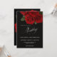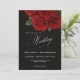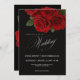 Um convite de casamento elegante e romântico com uma bela buquê de rosas vermelhas num fundo negro moderno. Este clássico design é perfeito para um casamento sofisticado e luxuoso.