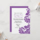 Damask roxo e branco 5 convites 7. O design apresenta um florescimento úmido em roxo elegante (vários tons disponíveis) no lado direito da placa, contra um fundo branco clássico. itens correspondentes disponíveis. atualmente mostrado em um acabamento de linha.