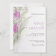 Casamento de tulipas cor-de-rosa lilás Pastel elegante, Convite num estilo aquoso solto com o moderno roteiro art nouveau de 1920. Flores boêmicas bonitas para um casamento de primavera ou verão. Versão simples verde e branca.