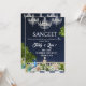 Elegante e moderno, este convite de casamento mínimo branco e azul de Sangeet dá o tom perfeito para a sua celebração pré-casamento. Com um design elegante, destaca a alegria e a tradição do Sangeet, oferecendo um novo impulso à celebração de eternos de música e dança.