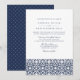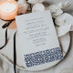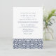Combinando a vibração do verão do Mediterrâneo com a elegância clássica de azul-marinho e branco, nosso convite de casamento Santorini apresenta um padrão de azulejos mediterrâneos no fundo da marinha costeira e branco, com seus detalhes de casamento em letras estáticas de blocos e scripts. Precisa de ajuda com o convite de casamento ou a personalização? Entre em contato comigo através do link "Perguntar a este Designer" nesta página.