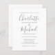 Apresentando nomes de estilo de assinatura, esta elegante cinza orçamentária e o convite de casamento branco podem ser personalizados com suas informações em caracteres de cinza. Projetado por Thisnotme©