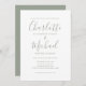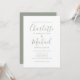 Apresentando nomes de estilo de assinatura, este elegante convite de casamento verde de sábio pode ser personalizado com suas informações em caracteres quânticos. Projetado por Thisnotme©